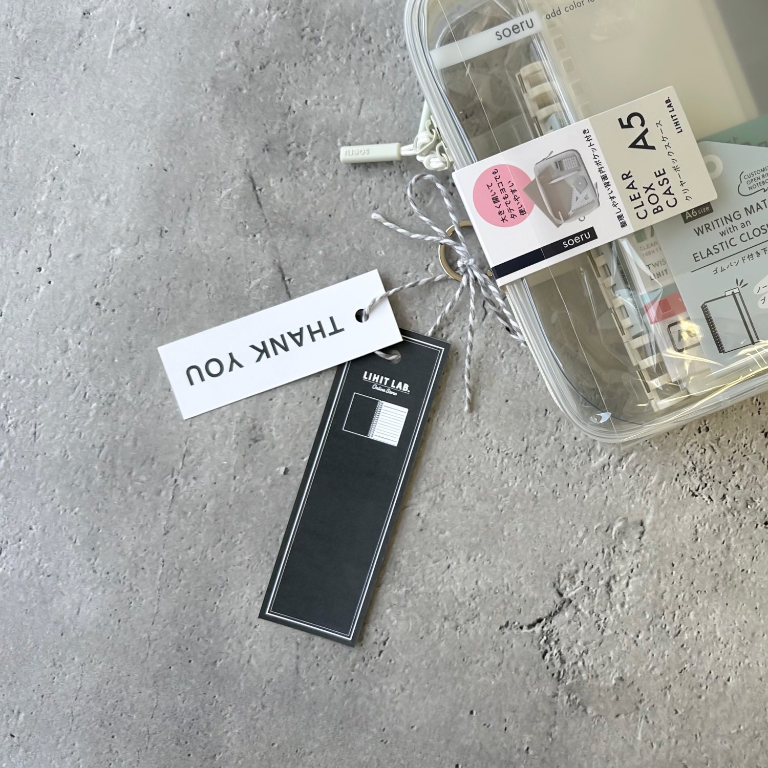 ・soeru クリヤーボックスケース A5に入れてお届けします。