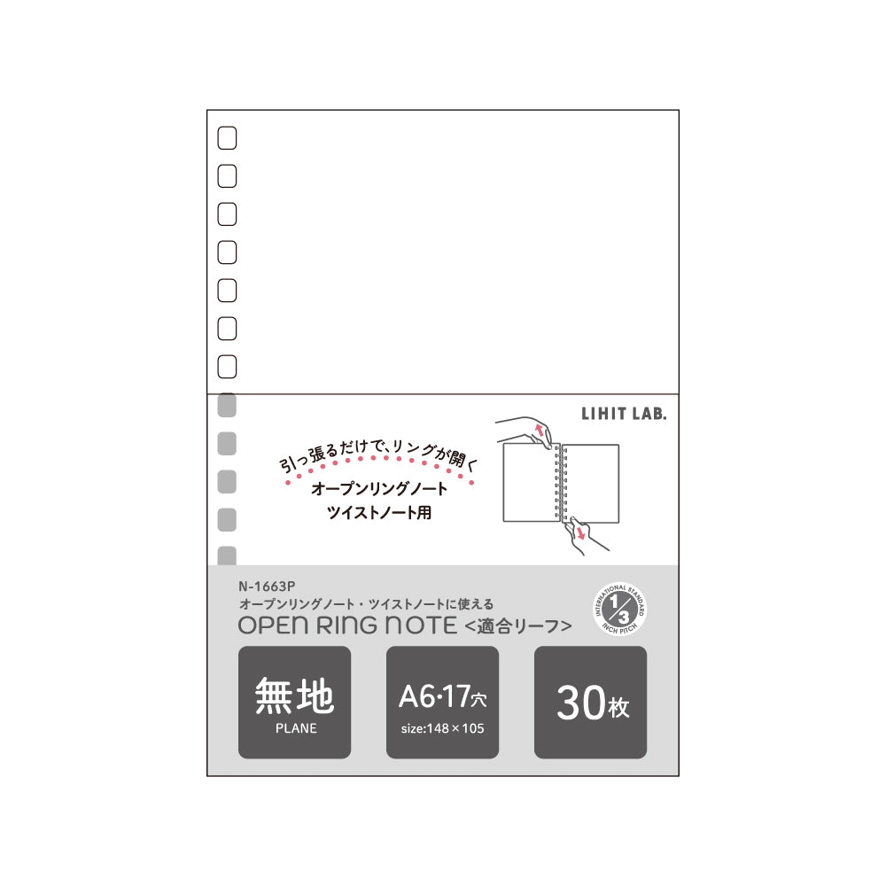 オープンリングノート・ツイストノート<適合リーフ>無地 A6